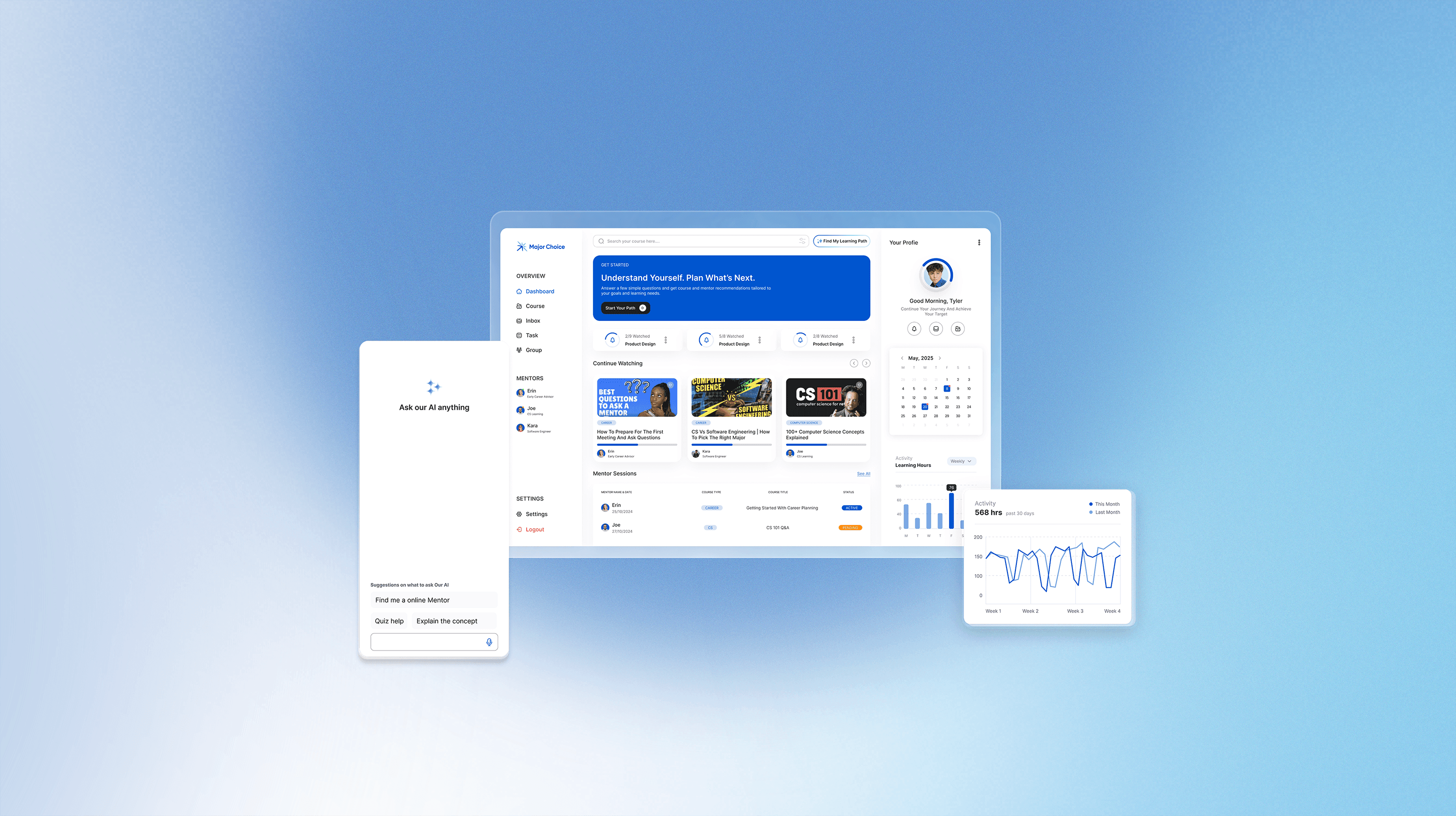Major Choice combines structured onboarding, in-context mentoring, and visualized learning progress to help learners move forward without unnecessary cognitive load. By supporting consistent engagement and clear next steps, the platform empowers neurodivergent youth to develop skills and prepare for their careers with confidence.